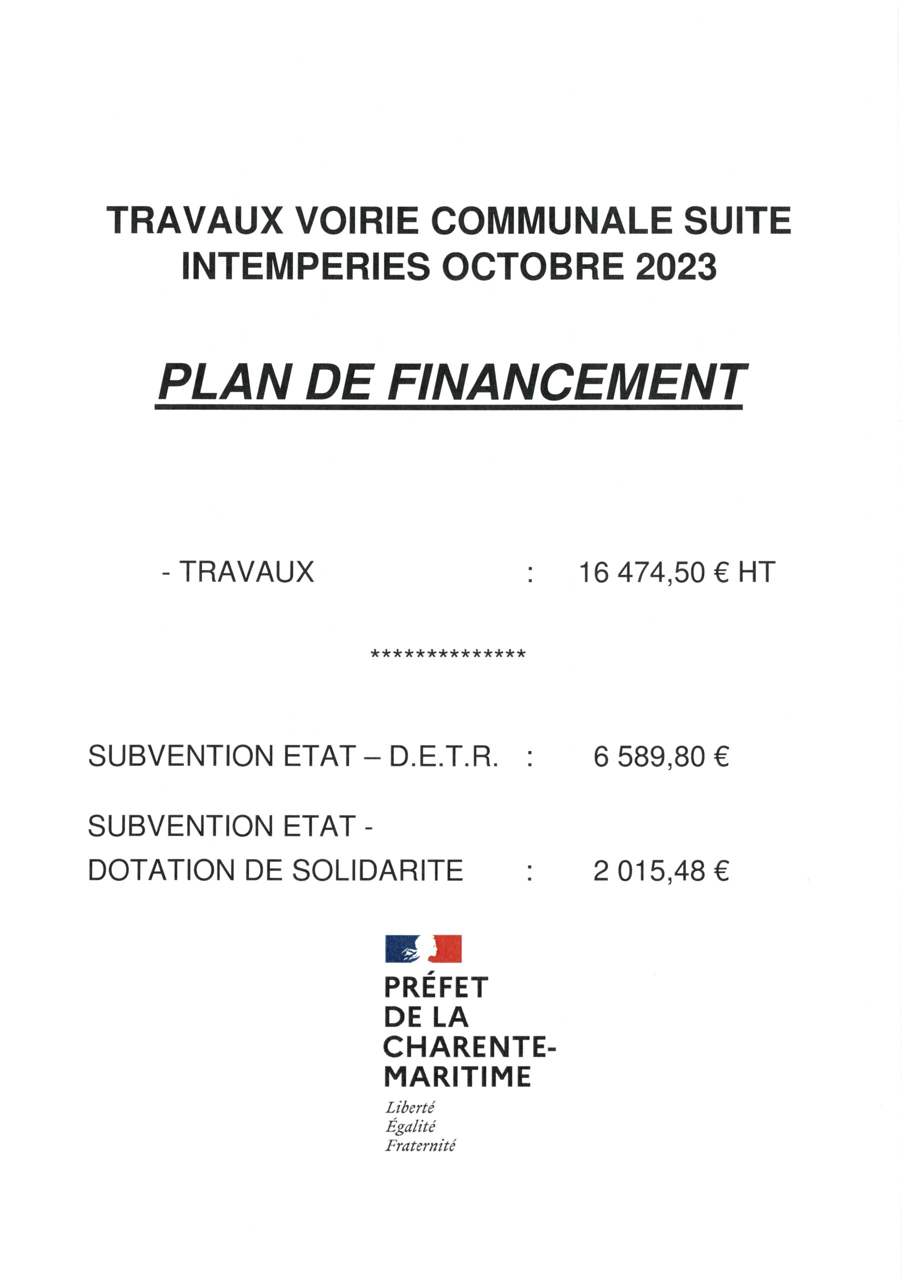 Montant des subventions d’état pour les travaux de voirie suite aux intempéries d’octobre 2023